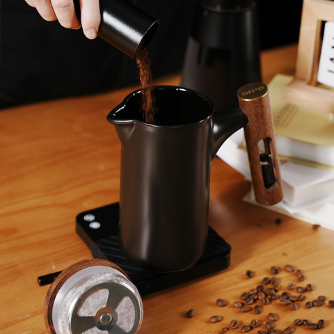 DHPO-카페 스타일 세라믹 프렌치 프레스 커피 프레스 나무 뚜껑